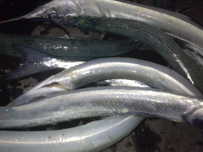 낚시도중에 학꽁치가 대거출몰하며