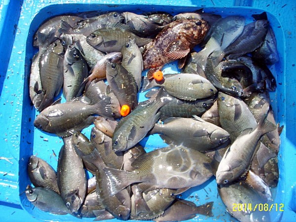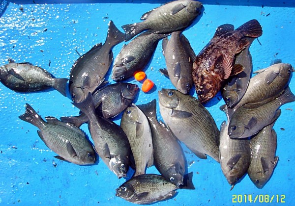 → 벵에돔, 솜벵이, 농어, 전갱이, 자리돔, 쥐치 등등 골고루 올라 옵니다