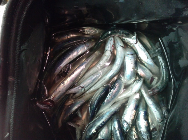 낮시간대에 씨알큰멸치가 전어카드에 마릿수로올라오고있읍니다