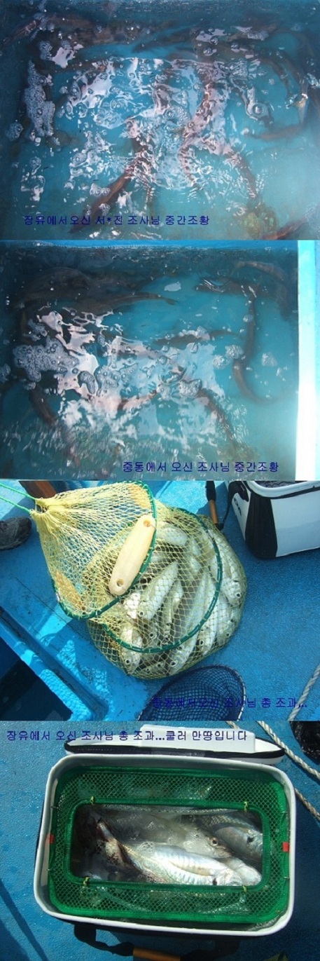 2시간30분 가량 낚시하니 쿨러만땅입니다. 금일 장유에서 오신 조사님과 해운대 중동에서 오신 조사님 쿨러만땅 채우신다고 고생많이 하셨습니다 ...장유에서 오신조사님 " 이쁜따님 " 전갱이 회,구이 많이많이 해주세요..