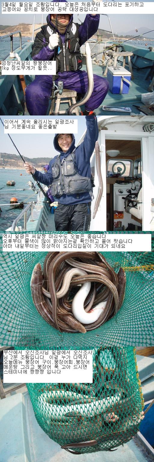 일광 에이스1호는 일석삼조를 노립니다 <BR>첫째 왕도다리 공략 둘째 왕붕장어 세째 씨알좋은 학꽁치까지 이세가지를 선비40.000원에 <BR>하루종일 즐낚할수 있지요 점심 맛난 미역다시마라면..커피.녹차.생수 이모든게 공짜<BR>일단한번 오시라니깐요 ㅋㅋ 일광 에이스1호 문의전화 010-3868-1406 김선장입니다