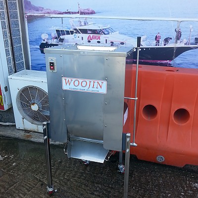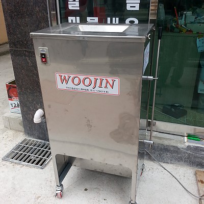 홍합분쇄기 입니다.(믹싱기능 추가가능) 제품 사이즈  정면:540mm/ 측면:460mm/  높이:1000mm   믹싱기능 장착시 제품높이:1230mm  (부가세 별도)