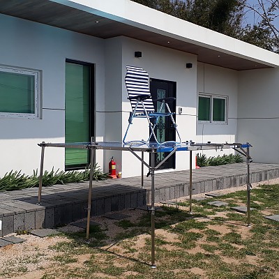 필피싱 콤비좌대 1500mm/2000mm 좌대 모습입니다. 정면 모습입니다. 측면 모습입니다. 하부쪽 모습입니다. 공용 받침틀브라겟 모습입니다. 다리보강바 모습입니다. (옵숀품목 입니다.) 파라솔 꽂이 설치모습입니다…