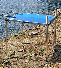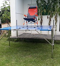 필피싱 콤비좌대 1800mm-2000mm사이즈 입니다. 측면 모습입니다. 하부쪽 모습입니다. 공용 받침틀 장착모습입니다. 파라솔 꽂이 장착모습입니다. 일반다리 장착 모습입니다. 뒤쪽에서 바라본 모습입니다. 중간 결합…