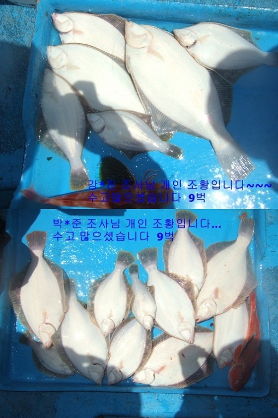 부산물을 먹을려고 도다리들이 많이몰려듭니다~~~