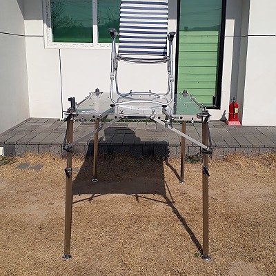 필피싱콤비좌대900mm/800mm사이즈 입니다. 정면모습입니다. 공용받침틀 브라겟 모습입니다. 하부쪽 모습입니다. 자동다리 모습입니다.(옵숀품목) 특허:10-2019-0080198 일반다리 모습입니다. 파라솔꽂이 장…